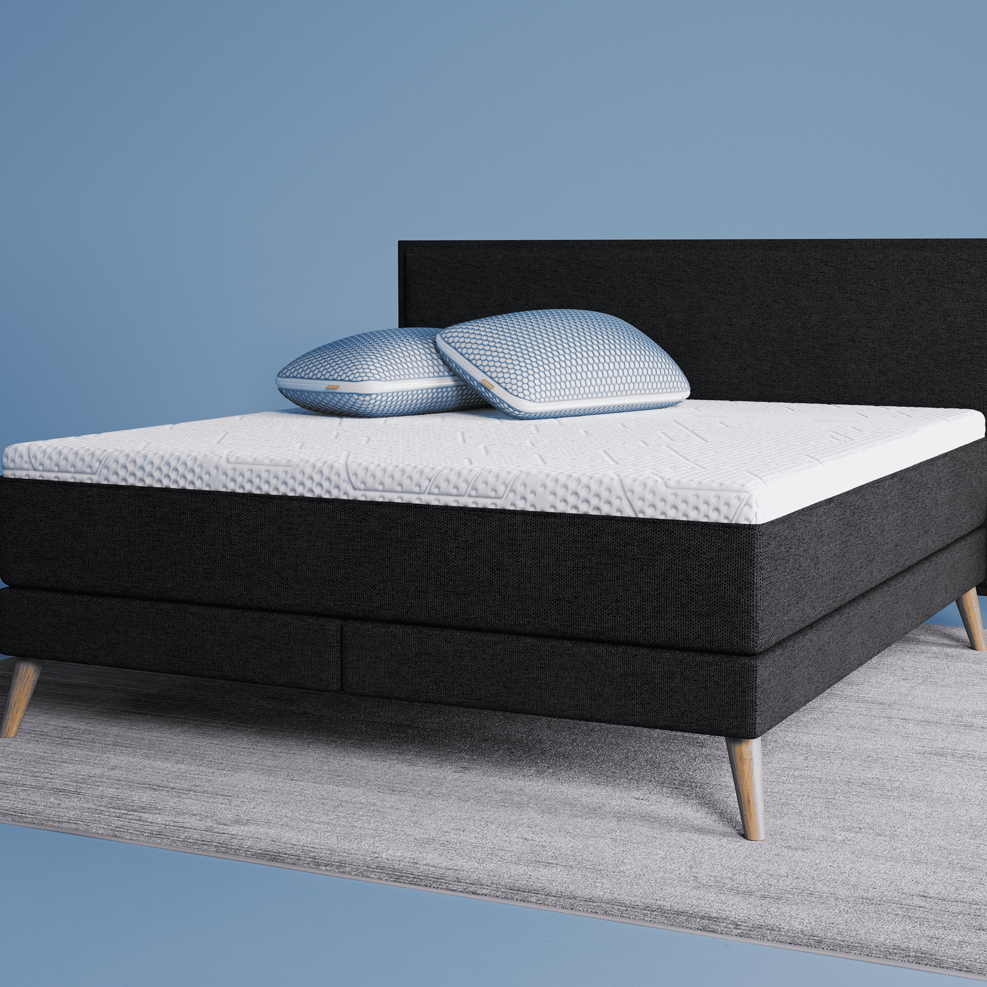 Dein neues Bett verfügt über unsere beliebte Emma Hybrid Matratze. Die 25 cm hohe Schaumstoff-Federkernmatratze ist in 5 Zonen aufgeteilt und hat 251 Federn pro Quadratmeter. Durch die Taschenfederkerntechnologie entlastet sie den Körper an genau den richtigen Stellen. Noch dazu sorgen Airgocell-Schaumstoff für ein erfrischendes Gefühl und Memory-Schaum für eine bessere Druckentlastung.