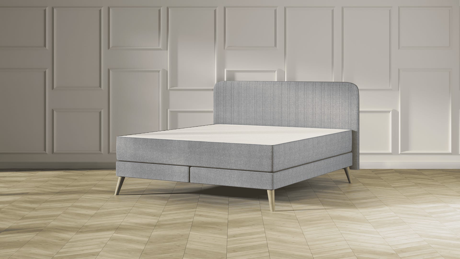 Die hochwertige Basis aus massivem Fichtenholz überzeugt mit einer eleganten Form und individuellen Gestaltungsmöglichkeiten. Wähle zwischen eckigen oder abgerundeten Kopfteil-Designs in verschiedenen Stofffarben und entscheide dich für Bettfüße aus einer exklusiven Auswahl.
