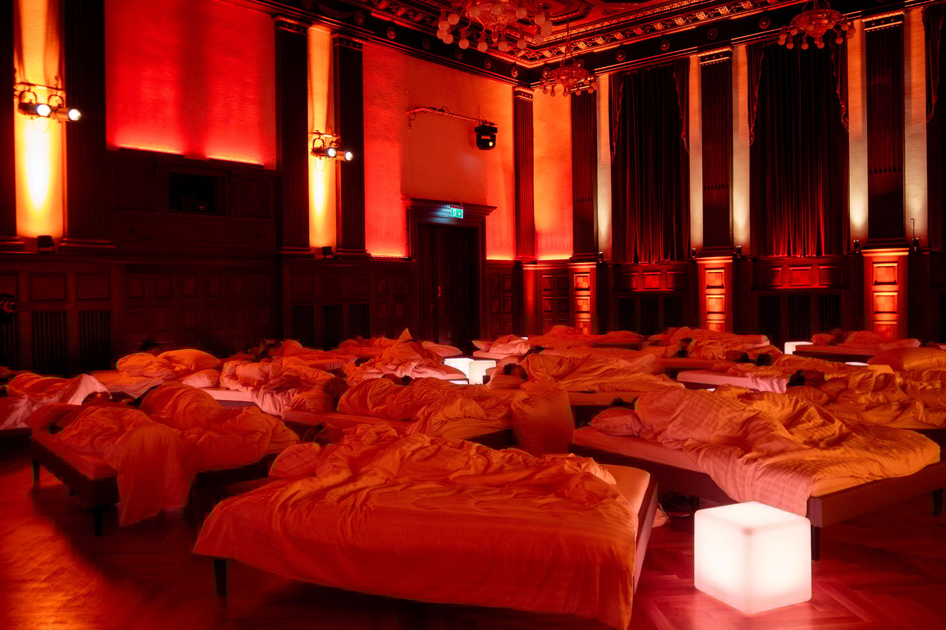 Das Emma Sleep Concert wurde im Meistersaal Berlin ausgerichtet, wo Musiker wie David Bowie, Depeche Mode oder Nick Cave einige ihrer bekanntesten Songs aufgenommen haben. Die Albumpremiere fand in ganz besonderem Ambiente statt, denn anders als gewohnt, lauschte das Konzertpublikum den Klängen der Musik nicht im Stehen oder Sitzen, sondern im Liegen. Einschlafen war dabei ausdrücklich erlaubt.